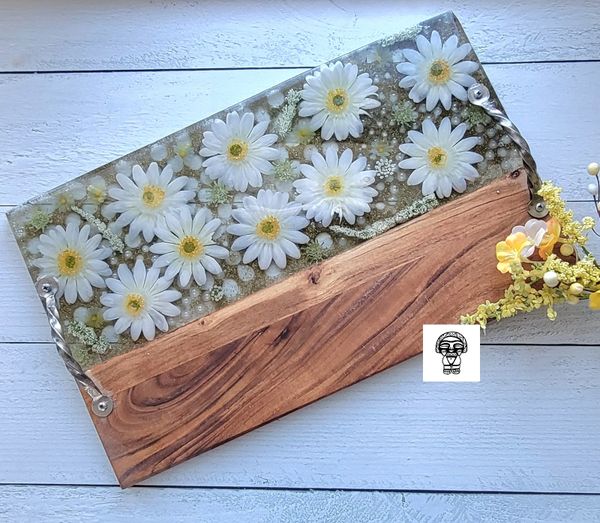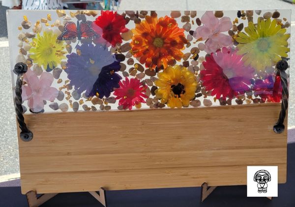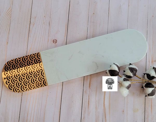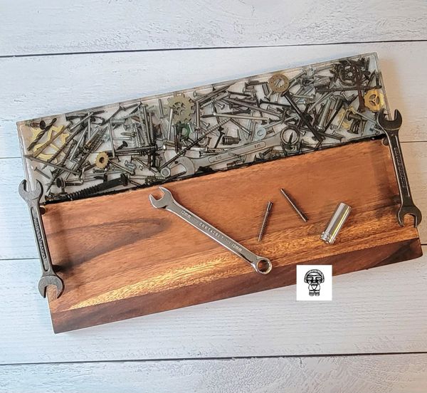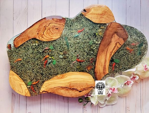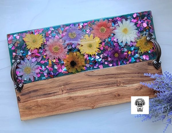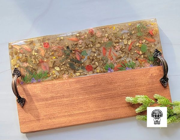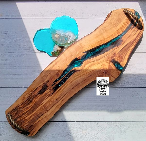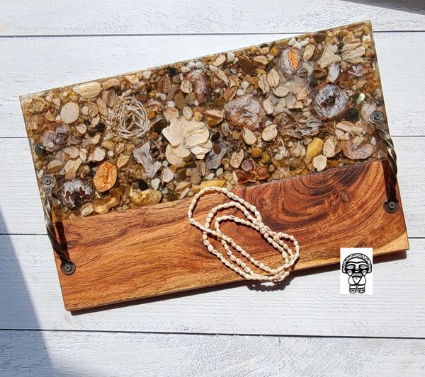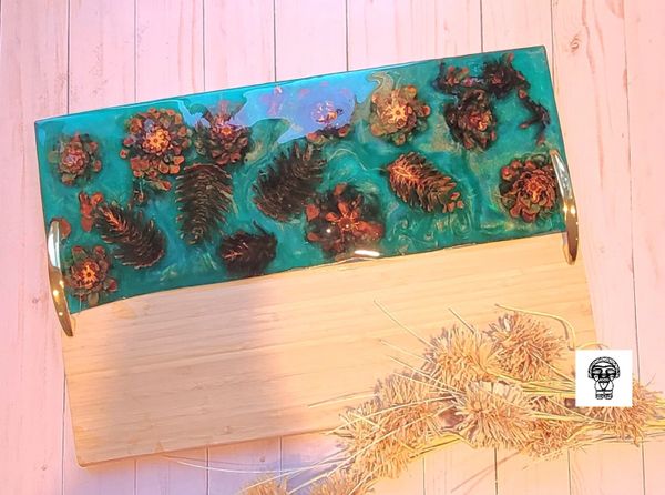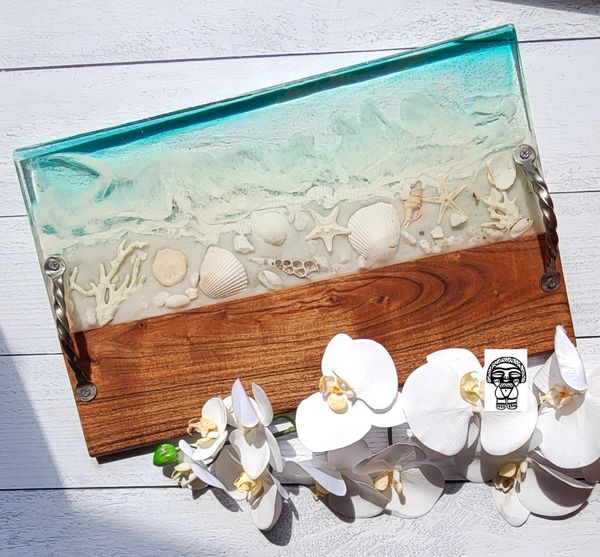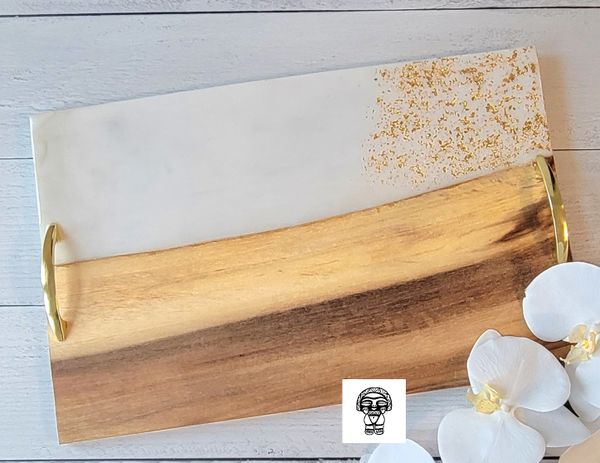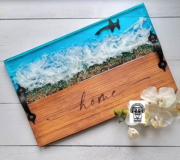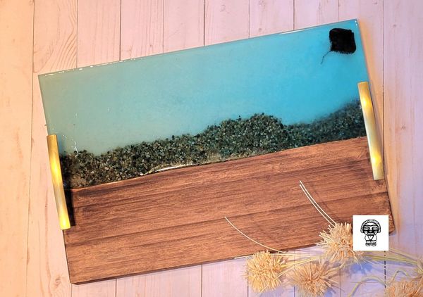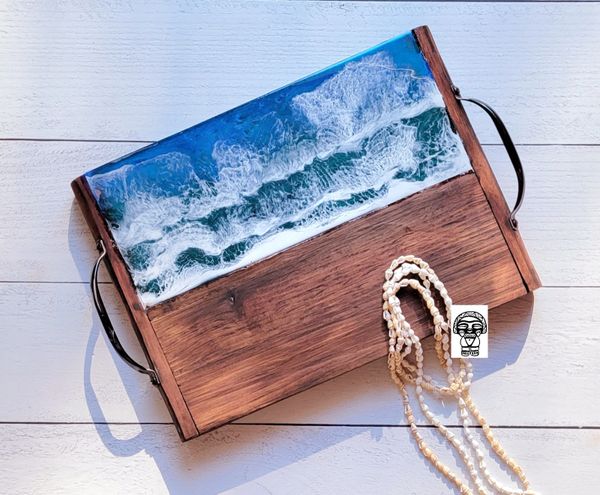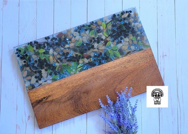 Our most popular item is our wood-resin serving boards, for their creative look and durable material. Where else might you purchase a custom timeless piece of wood that you could use to display artisanal cheese, cured meats and perfectly ripened fruits during an event with friends? Or you may choose to display it on your favorite wall or coffee table. The options are endless